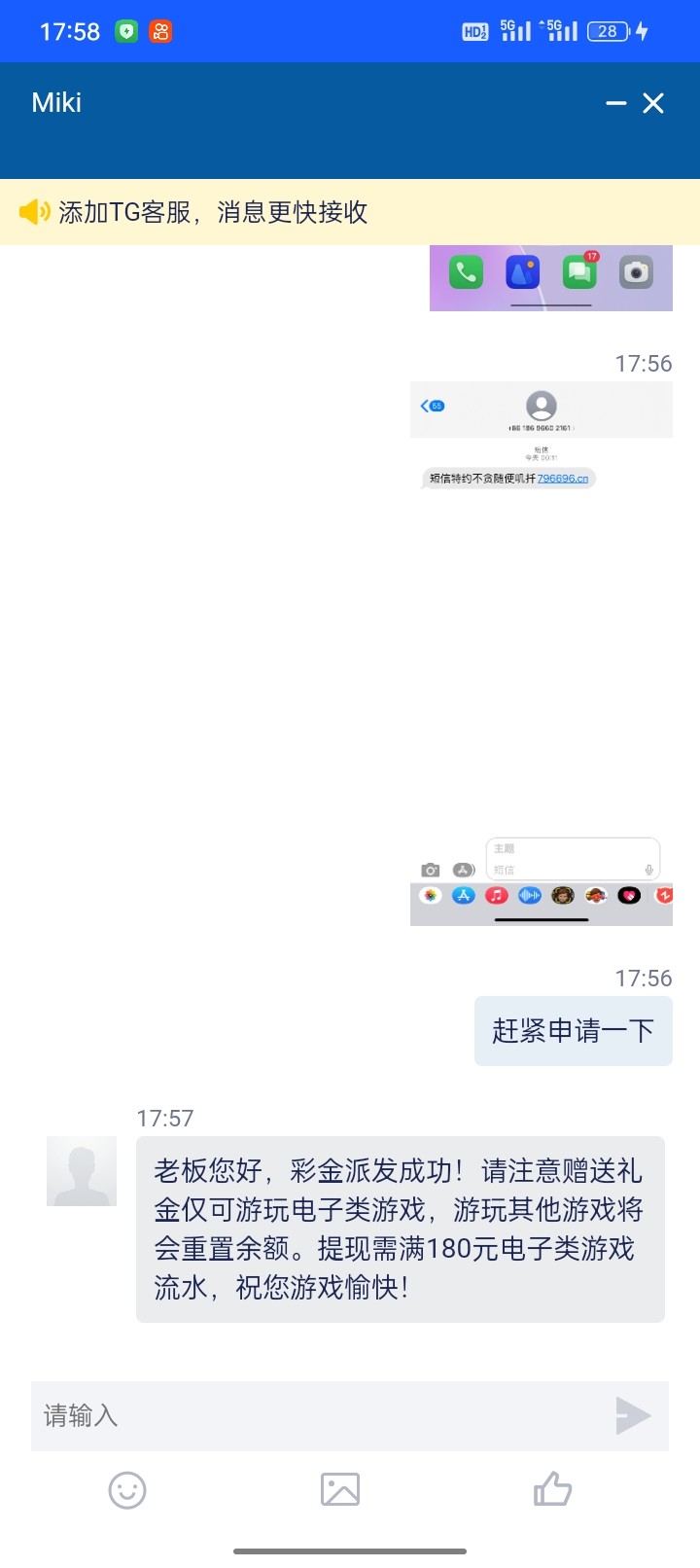 特邀碰瓷:收到短信的注册联系在线客服申请18彩金  查手机号有短信的去